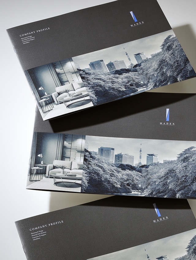 高級戸建分譲住宅の企画・設計・施工を手掛ける企業の高級パンフレット、表紙デザイン制作実績です。