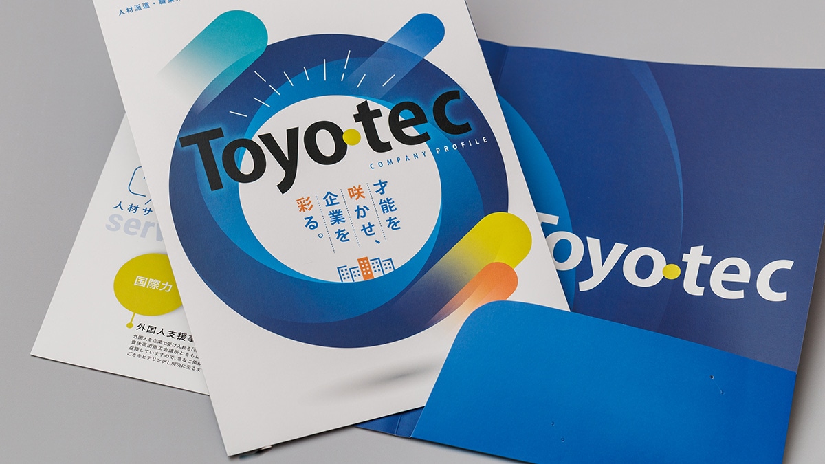 人材を”人彩”と表現する人材会社、ポケット加工を施したパンフレットの表紙デザインです。見込み客への初回訪問時の”掴み”となることを同社から強くリクエスト。