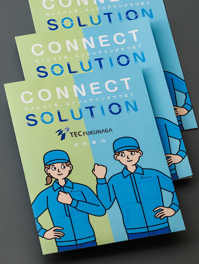 樹脂製品製造という製造業の中でも専門分野の製品を取り扱う企業。会社パンフレットの使用目的は展示会で訪問したユーザーとのタッチポイントで活用するものです。
