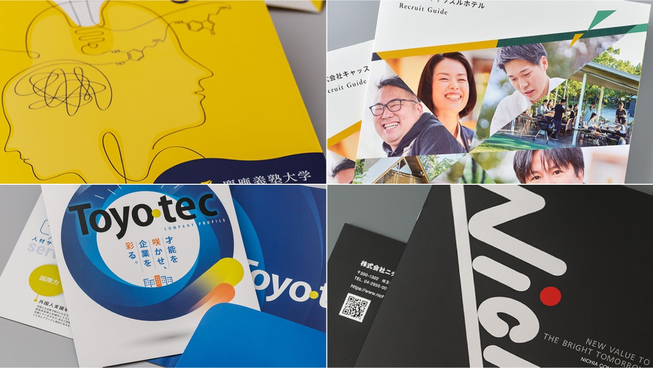 パンフレットは企業向けあり、営業向けあり、商品パンフレットあり、採用目的あり!