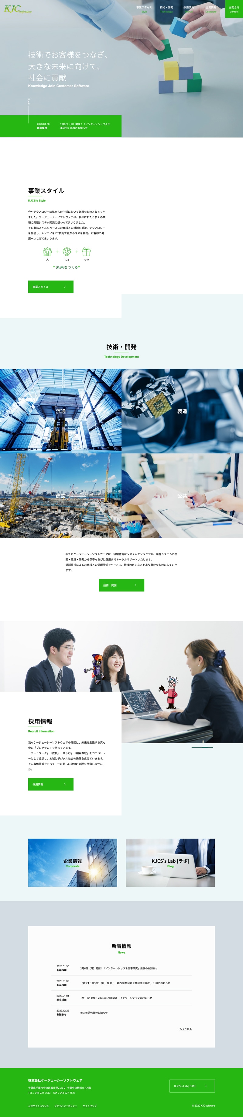 「Knowledge Join Customer Software」の企業メッセージをタイポグラフィで表現。 - デザインのトーンアンドマナーとして、コーポレートサイトと同様、イメージ画像に青いフィルターをかけるアレンジ。
