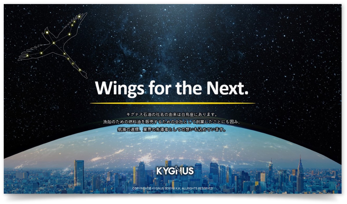 デザイン面では、コーポレートカラーであるブルーとイエローを基調に、社名の由来である白鳥座をモチーフとしたロゴアイコンを表紙ビジュアルに採用。歴史と独自性を背景に持つ企業のブランドストーリーを一貫して表現しています。