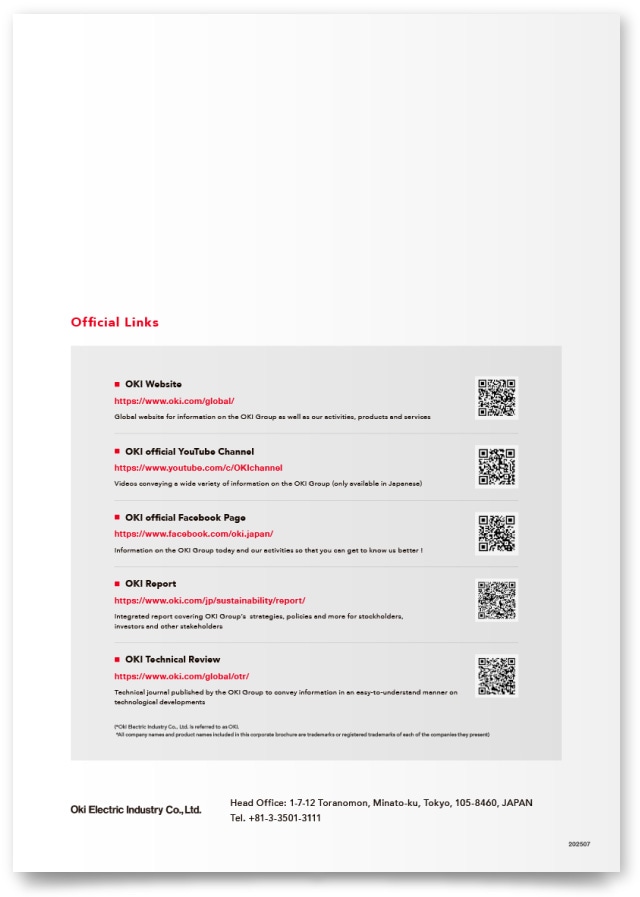 沖電気工業株式会社様・会社案内(英語版)|裏表紙