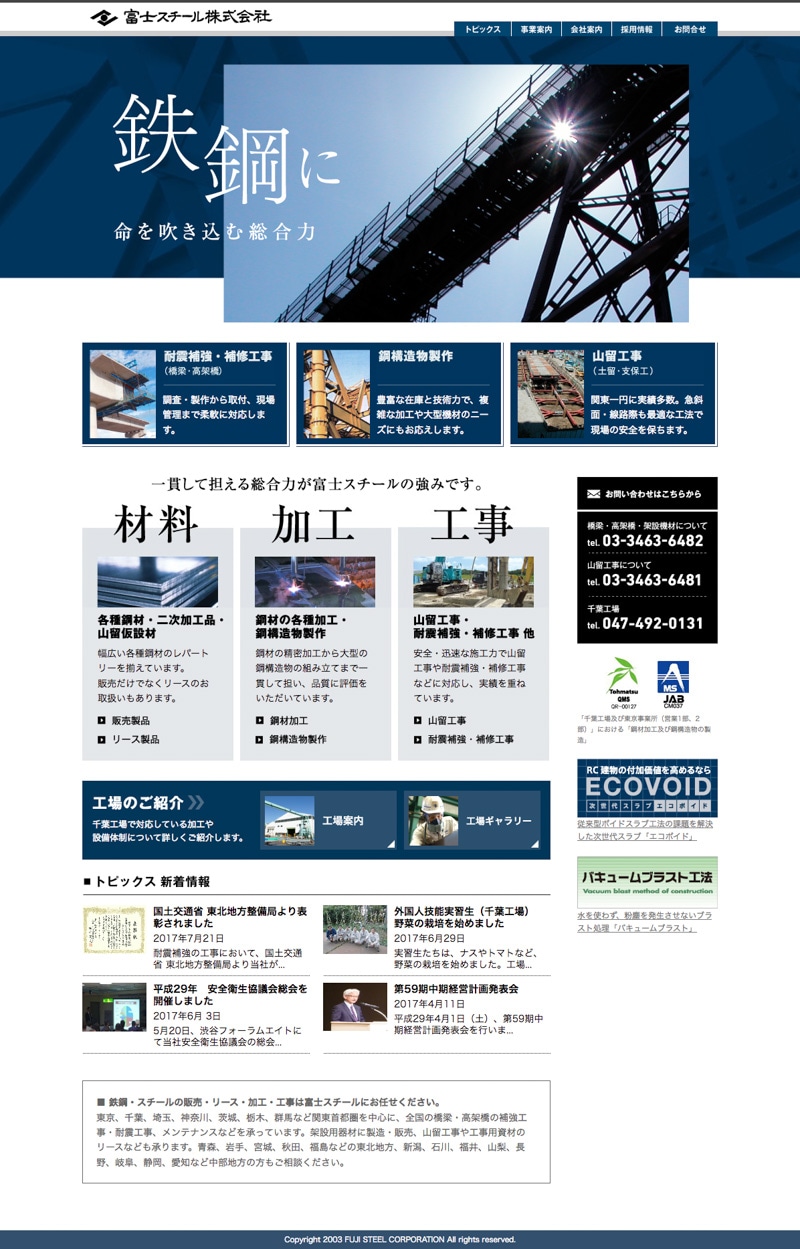 WebサイトURL/ http://www.fujisteel.co.jp/