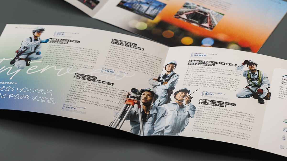 地中送配電工事、変電電気工事、土木工事を手掛け、ライフラインとして欠かせない電気を支える株式会社E&Cマクロム。高校生採用強化を目的に採用パンフレットを制作しました。