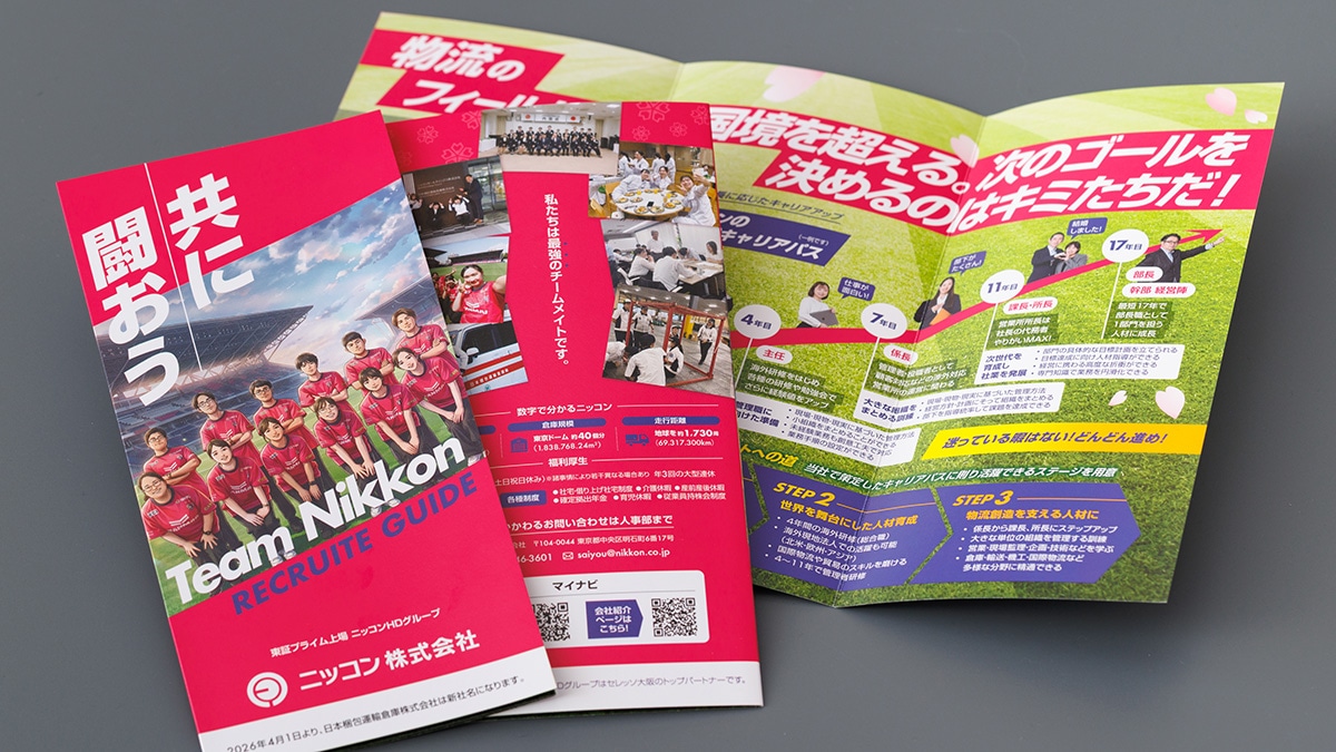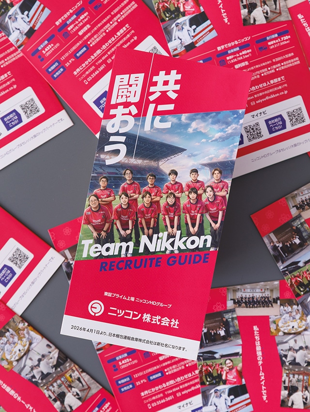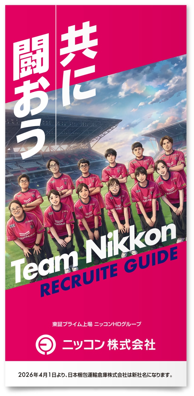 前身の日本梱包運輸倉庫から2026年4月に"ニッコン"へと社名変更を行ったロジスティクス企業。同社の採用パンフレットの制作実績です。